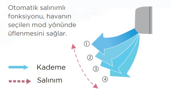 Otomatik salınımlı fonksiyonu, havanın seçilen mod yönünde üflenmesini sağlar.